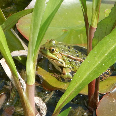 Er erschwert die Gespräche auf der Bank beim Kaffeetrinken. Er quakt gerne richtig laut. Alle Kinder sind begeistert vom Vereinsgeländefrosch und versuchen immer wieder, ihn zu erspähen. Nix da! Er tarnt sich gut.